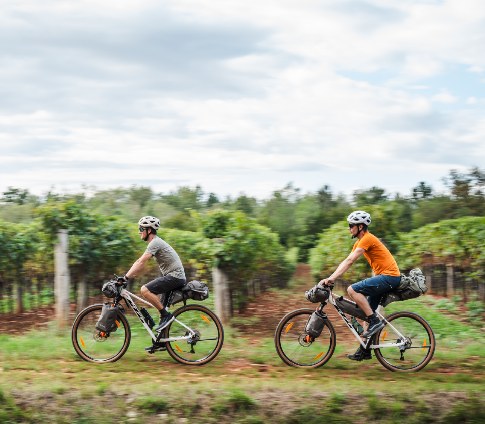 Al van kilometers afstand zien ze Motovun liggen: het middeleeuwse dorpje torent hoog boven de groene velden en heuvels van Istrië uit. Vanuit de vallei fietsen Olivier en Stefanie bergop. Met rode wangen bereiken ze de top. Wie na zo’n inspanning drijfnatte fietsshirts verwachtte, heeft het mis, want de fietskleding van Rab voert zweet razendsnel af en droogt instant. “Geen okselvijvers te bespeuren!” lacht Stefanie.