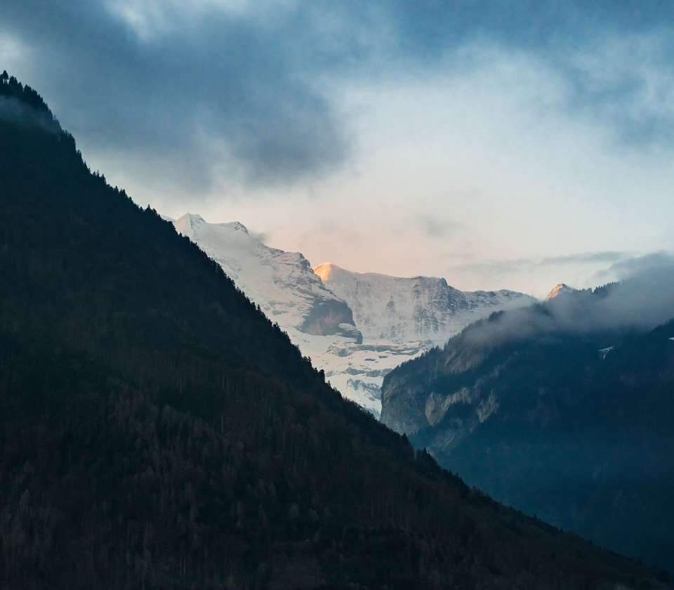 Het enige wat we missen tijdens onze vlucht: het uitzicht dat Interlaken beroemd maakte. De naam van het stadje onthult een troef - tussen meren - maar de echte attractie wenkt hogerop. Daar torenen drie kanjers van Alpenpieken: Eiger (3967 meter), Mönch (4107m) en Jungfrau (4158m). Al meer dan anderhalve eeuw komen reizigers zich eraan vergapen. In het begin waren dat keurige dames in hoepelrokken en heren met snorren en monocles. Gore-Tex was nog niet uitgevonden, maar het bleek wel het begin van iets groots: bergtoerisme. Helaas hullen de toppen zich bij ons bezoek in sluiers.