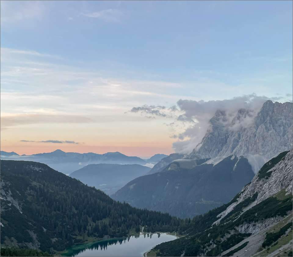 Lander: “Aan de voet van de Zugspitze, de hoogste berg van Duitsland, ligt het dorpje Ehrwald. Van daaruit vertrokken we op een tweedaags avontuur. We wandelden langs de Drachensee en de Seebensee en overnachtten in de gezellige Coburger Hütte.